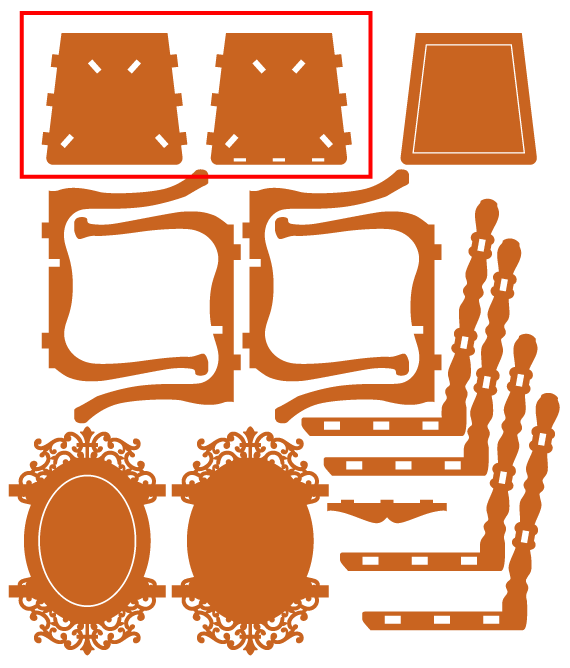 プリンセスチェア1/4サイズ、1/3サイズのパーツの封入間違いが確認されました!該当箇所は座面飾りの穴が空いているものと空いていない物が2枚必要なところ、同じ形同士をスタッフが入れていたことが発覚しました。