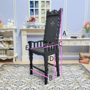 A:全長40㎝ B:横幅15.5㎝ C:奥行14㎝ D:床から座面までの高さ 16.5㎝ E:座面手前から背面部まで10㎝ F:座面から椅子最長部まで24㎝