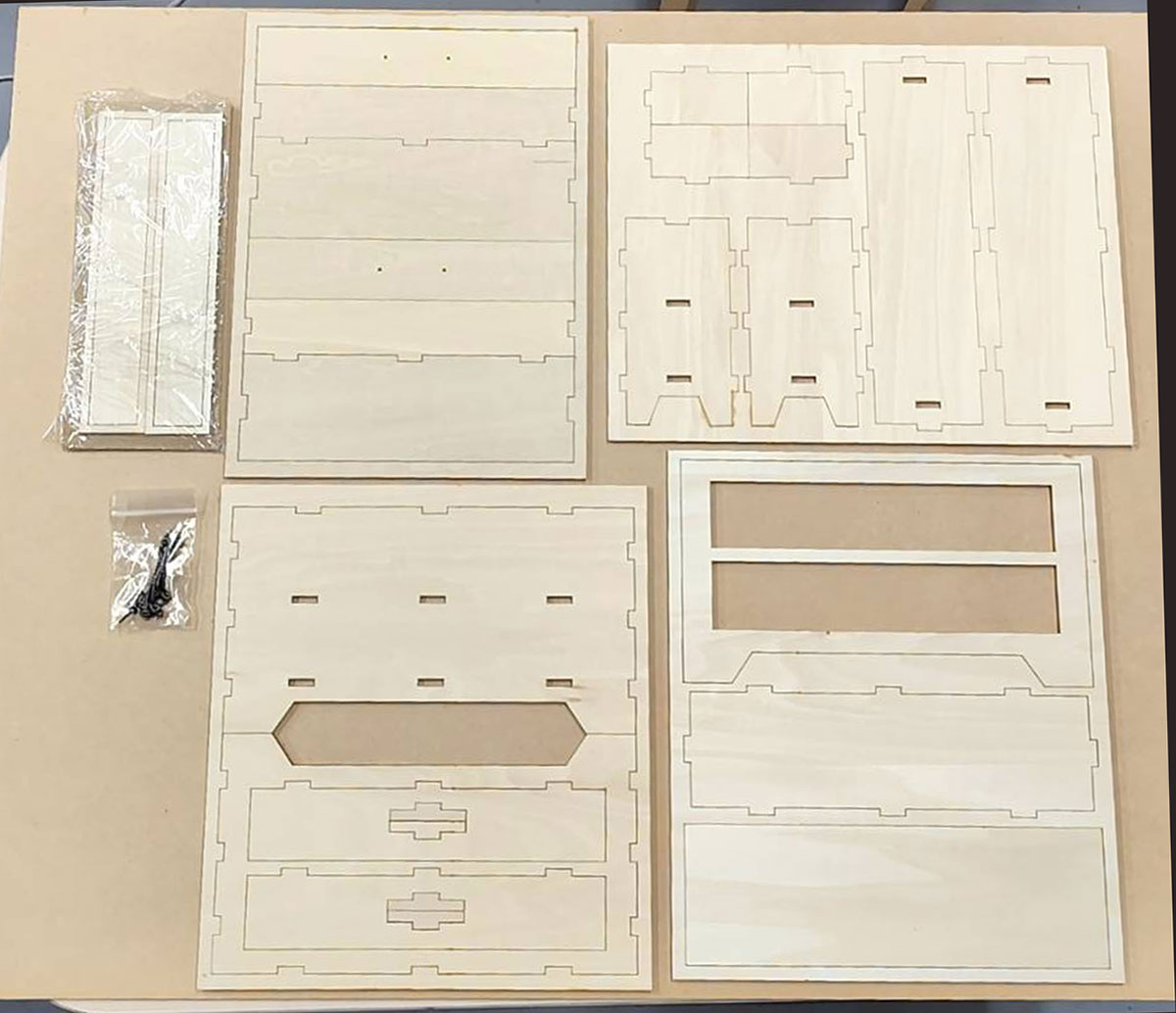 8.最後に正面の板の上にさらにきれいな凹凸のない板をボンドで貼ります。そして上部の蓋部分にもきれいな天板板を貼ります。正面と上部は凹凸を表示しないよう作っています。