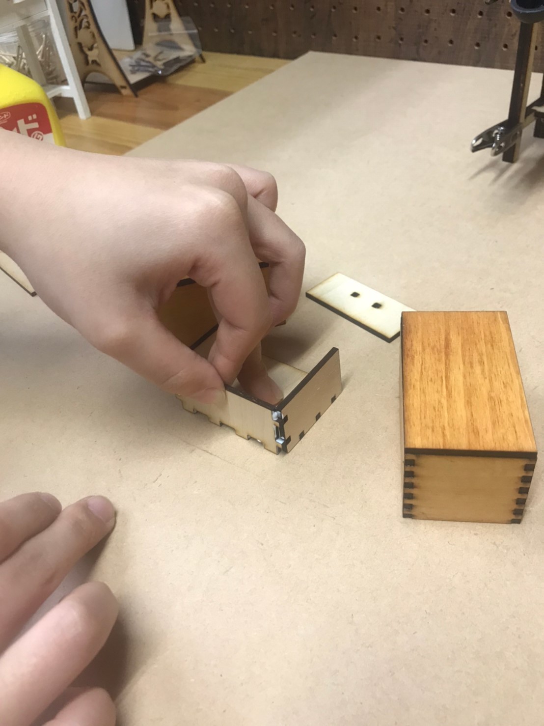 【不備詳細について】引き出しのパーツが本来はシナベニヤ材3㎜で加工するところを加工時に4㎜のシナベニヤで加工してしまったようで貼り付け時に凸凹している状態+取っ手が入らない状態が発生しています。