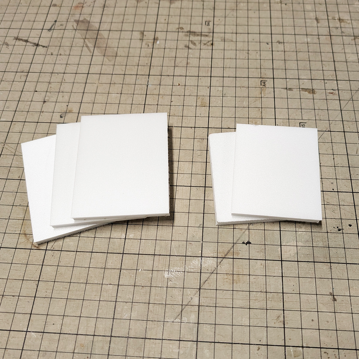 作り方⑤背表紙とスチレンを貼り合わせます。大4冊、小8冊出来上がります。紙は好きなデザインを選べるよう多めに入っています。余った紙で追加で作りたい場合は5ミリのスチレンボード買ってカッターでカットしてご利用下さい。